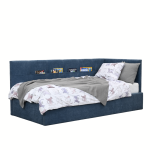 Nach dem Unterricht – ein gemütlicher Platz zum Lesen und Entspannen, nachts – ein komfortables Bett zum Schlafen. Das Polsterbett BUBA bietet mit seinem Eck-Kopfteil eine geschützte Ecke, und die integrierten Taschen bieten Platz für Comics, Tablet oder Notizen – alles griffbereit, die Wand bleibt sauber.